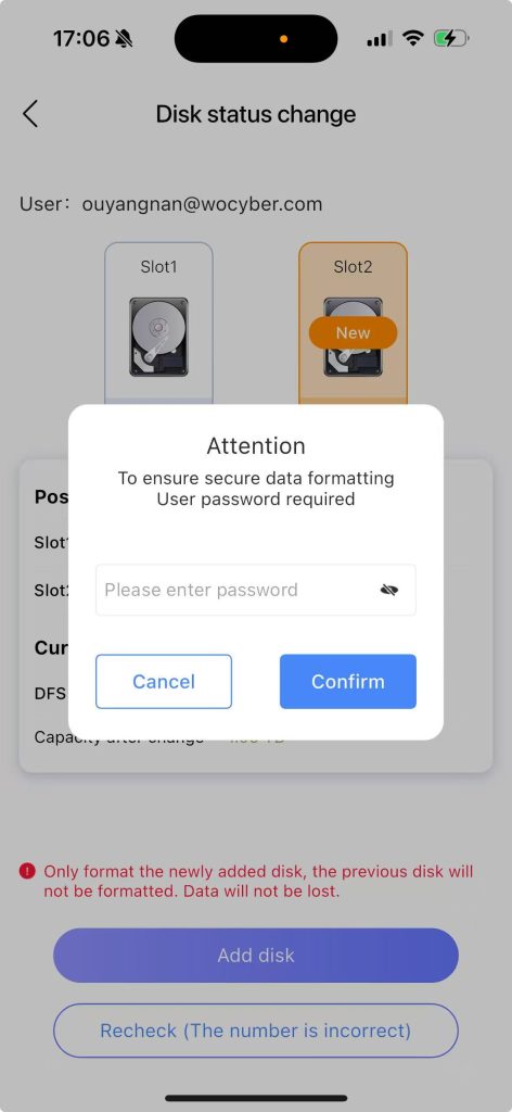 Step 3: After entering the password and clicking “Confirm”, the new hard drive will be formatted. The data on the remaining hard drives will be retained and not cleared.