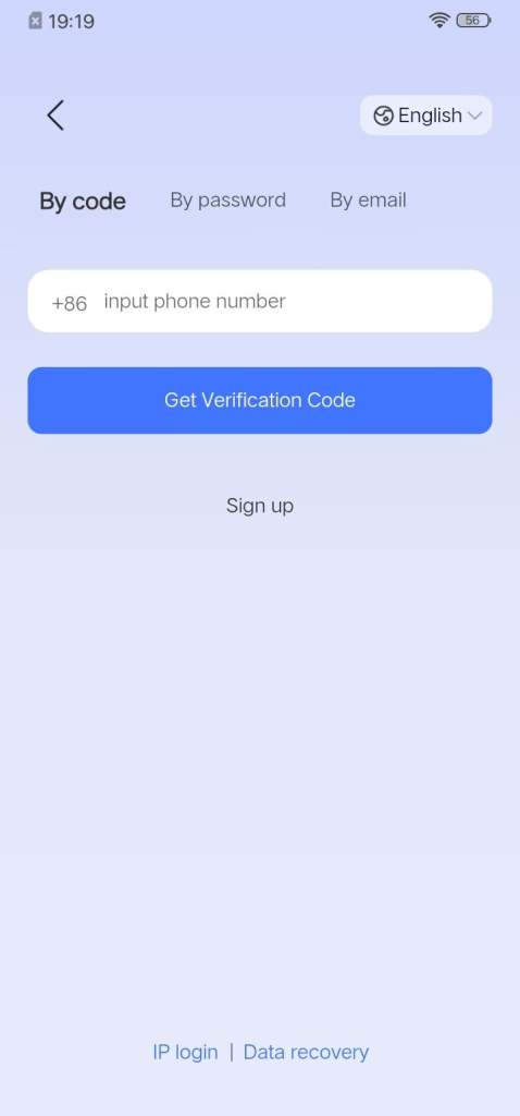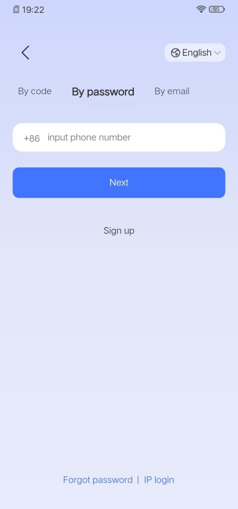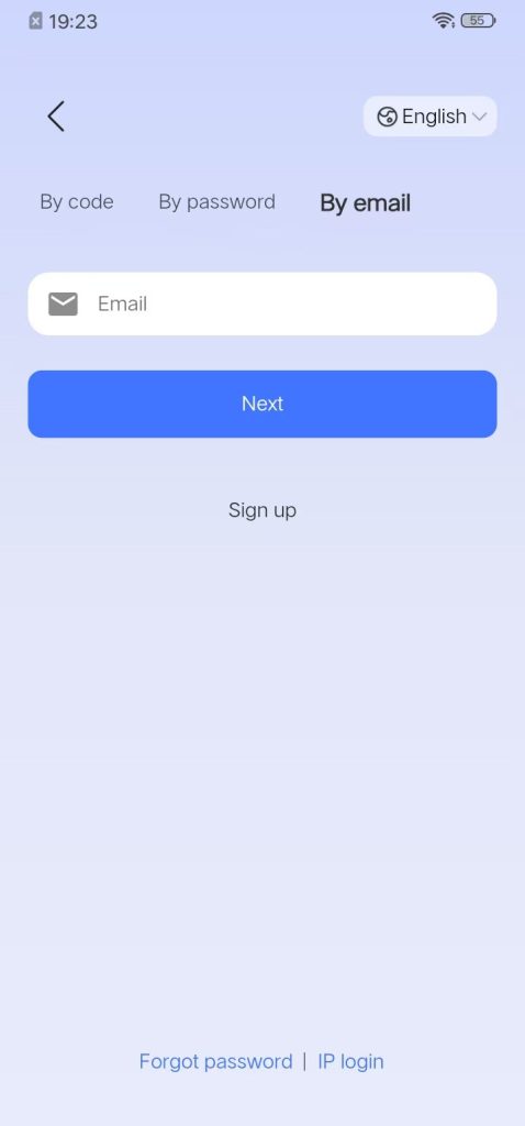 Once your mobile phone number has been successfully registered, you may use the “Email Login” option to access the device.