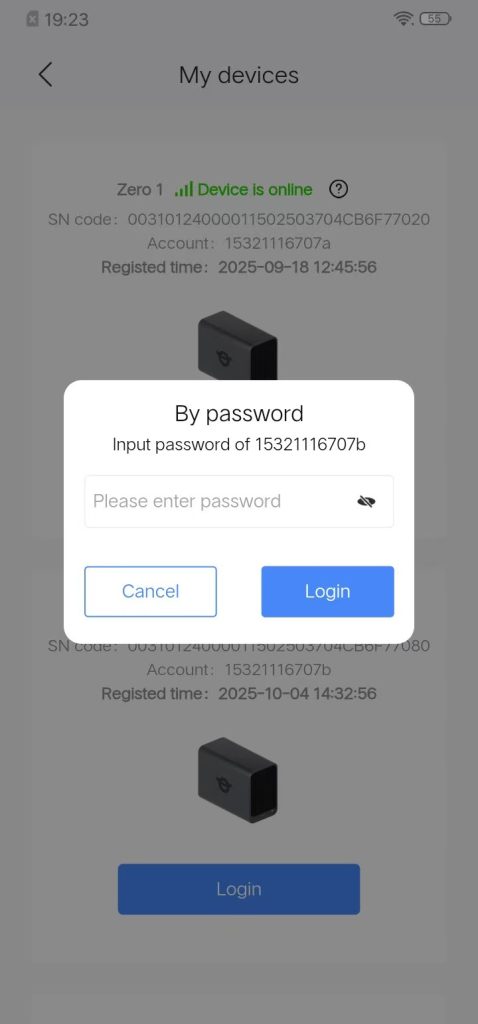 Step 2: After selecting the device and entering the email address, a “Password Login” prompt will pop up. Enter the password and click “Login”.