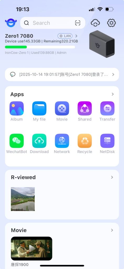 手机端与设备一个局域网登录时,APP登录首页显示“内网”,内网上传/下载文件时网速更加快稳定