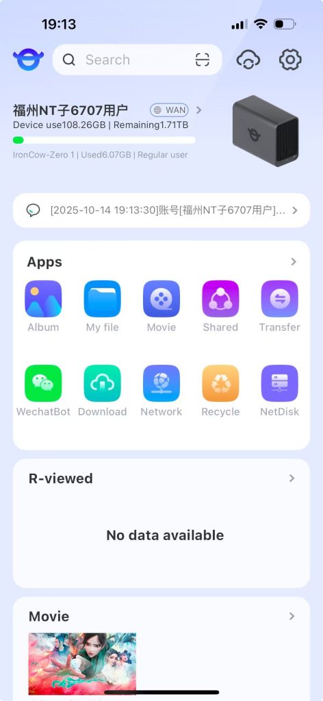Step 2: Log in to the APP home page on the mobile phone – the network icon displayed shows “External Network”.