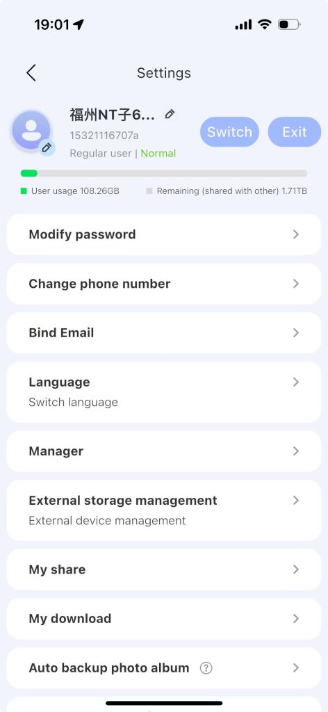 Step 1: Launch the APP and log in. Navigate to Settings, select Storage Management, and proceed to the Storage Management page.