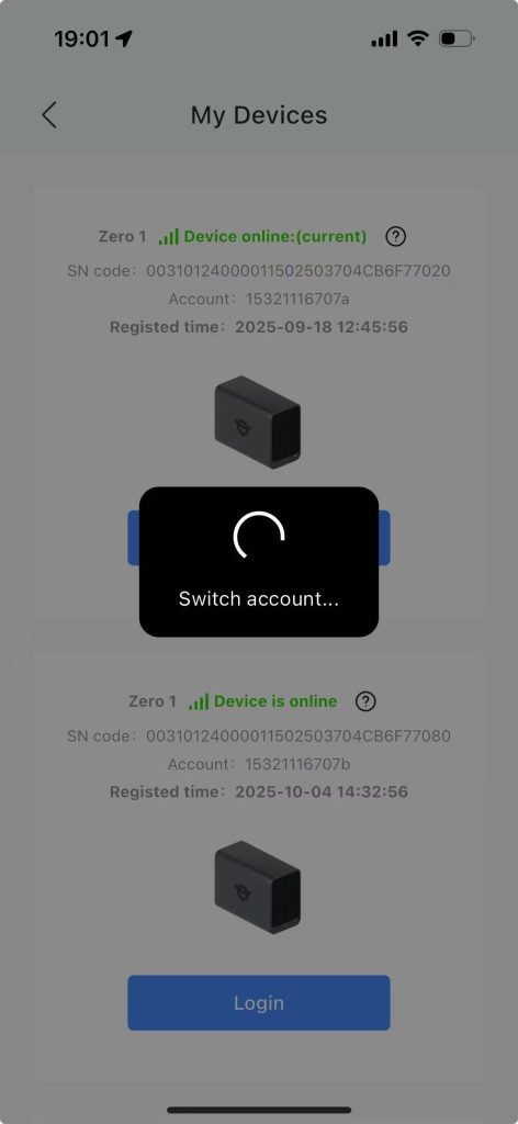 Step 4: Prompt “Switching accounts”, and automatically enter the home page of the switched device after the switch is completed.
