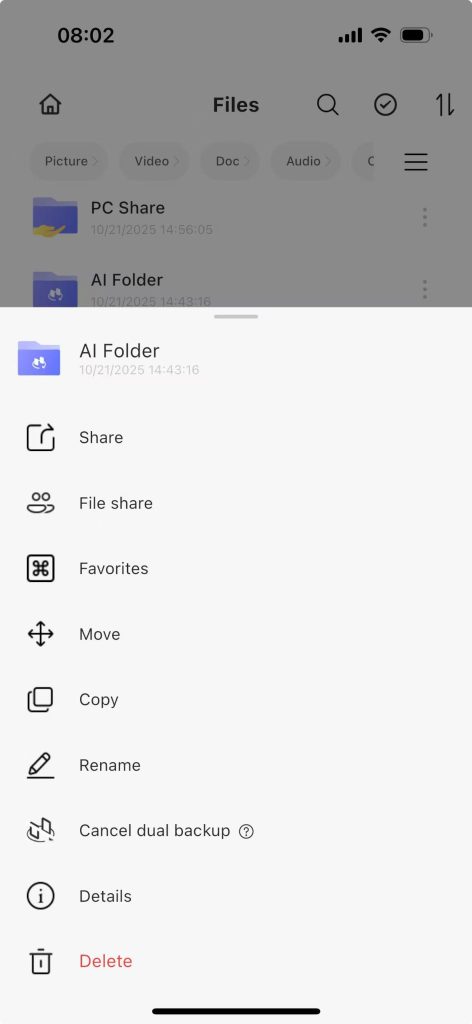 Step 2: Select a folder and click the “three dots” button behind the folder.