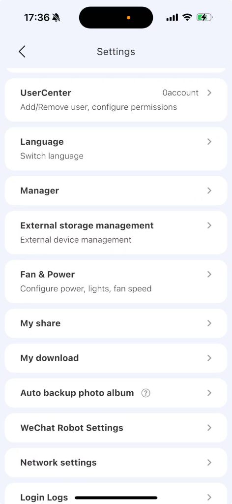 Step 1: The administrator logs in to the APP, clicks the “Settings” button in the upper right corner – Settings page