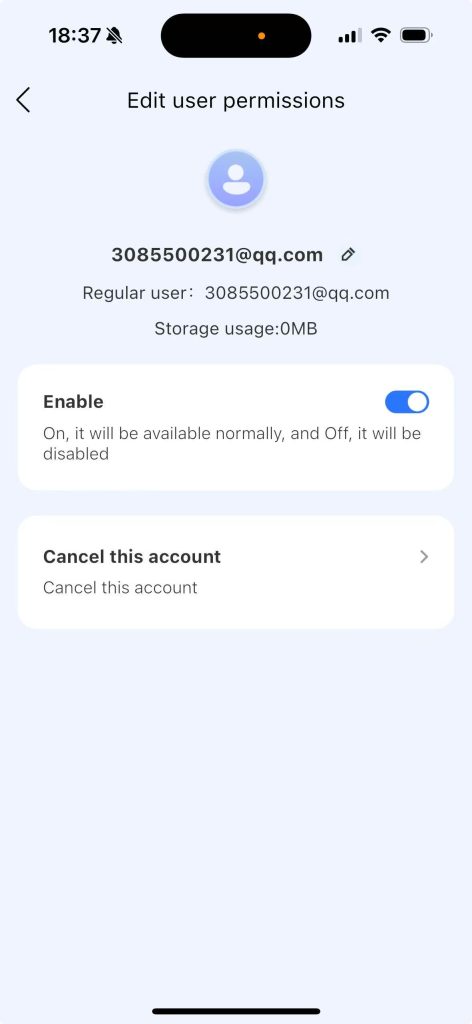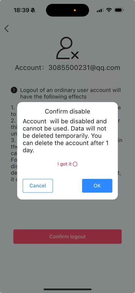 Step 1: Log in to the administrator app and enter the settings page. Click “Cancel account”.
