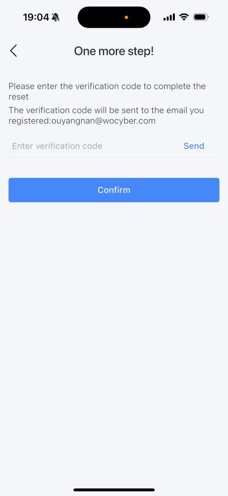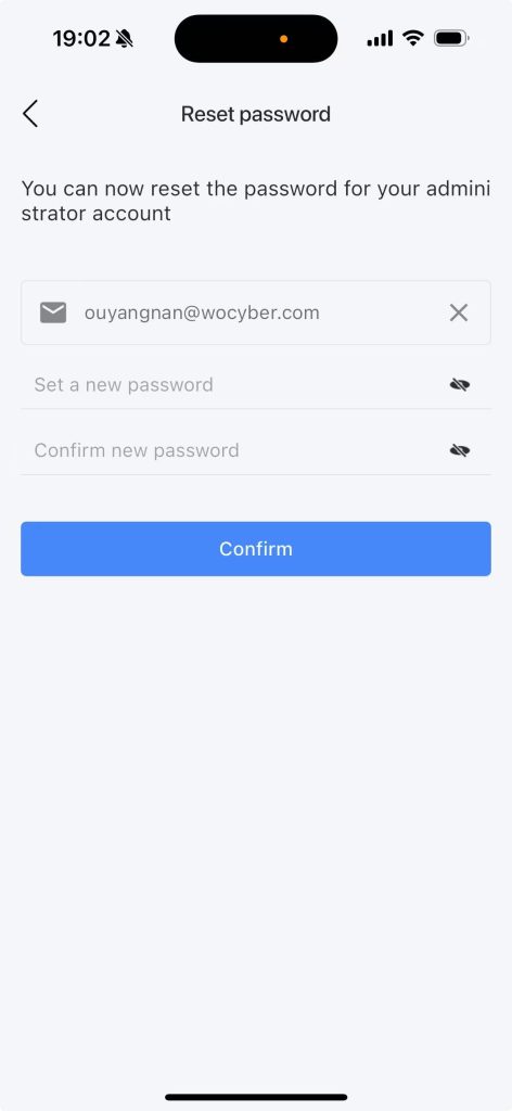 Step 6: After obtaining the verification code sent to your mail and clicking “Confirm”, a prompt will appear saying “Password reset successfully”, and the system will automatically return to the login page. The status light will change from slow green flashing to steady green illumination.