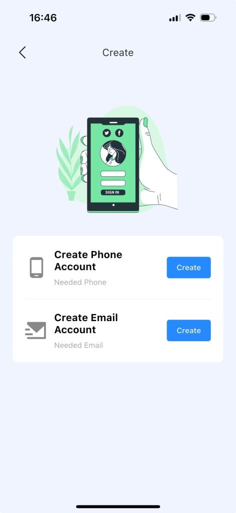 Step 3: Click on the “+” to create a mobile phone account or an email account. Here, we take creating a mail account as an example. The method for creating an email account is the same as that for creating a mobile phone account.
