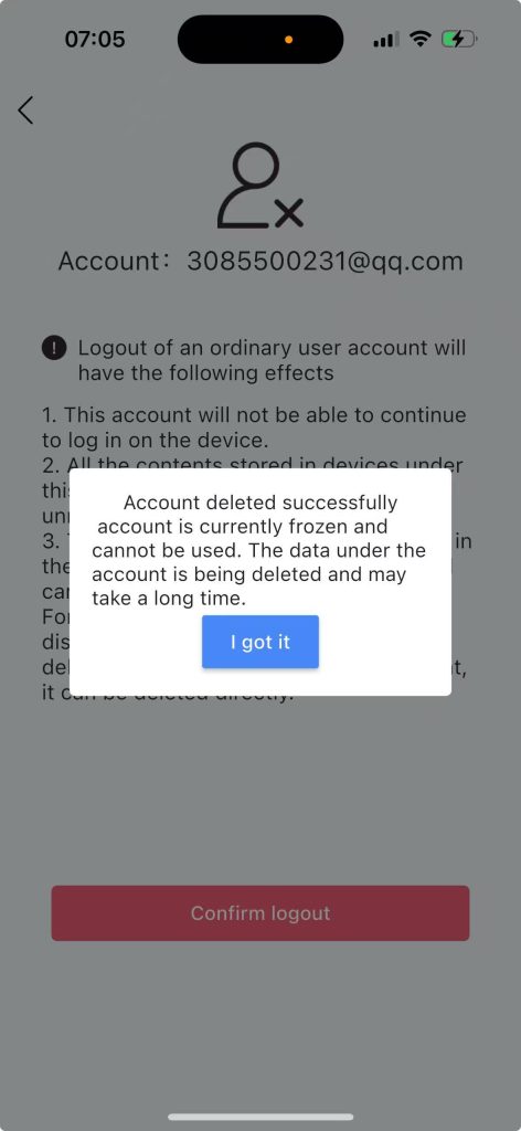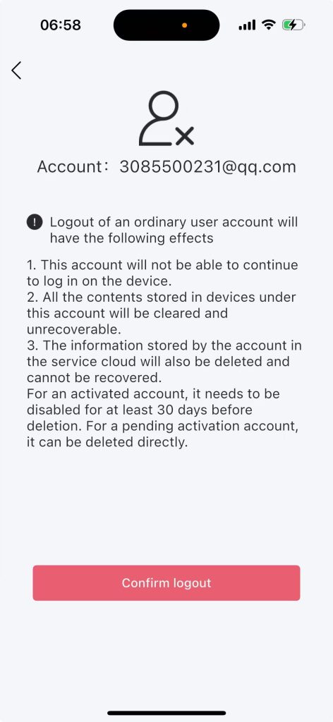 3. All information associated with this account stored in the cloud service will also be permanently deleted and is irrecoverable.