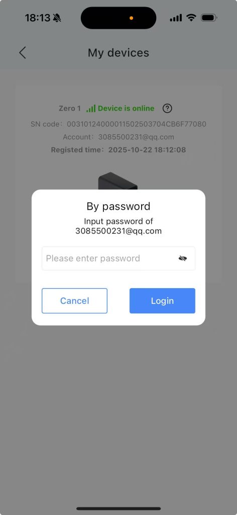 Step 3: Select the device – A “Password Login” pop-up will appear.