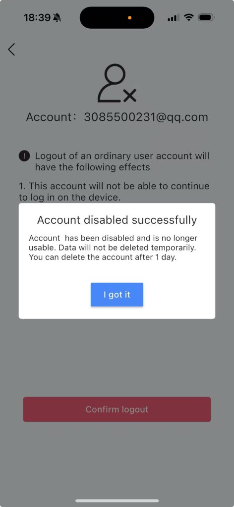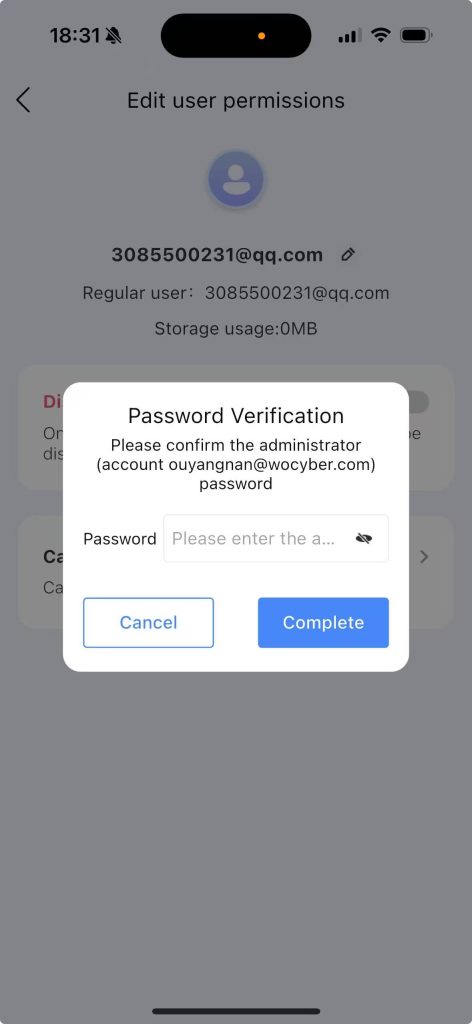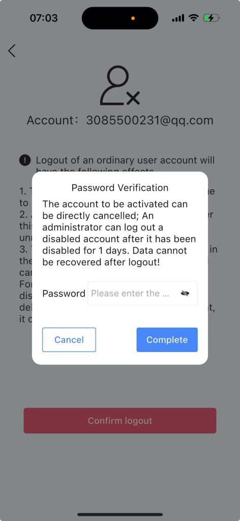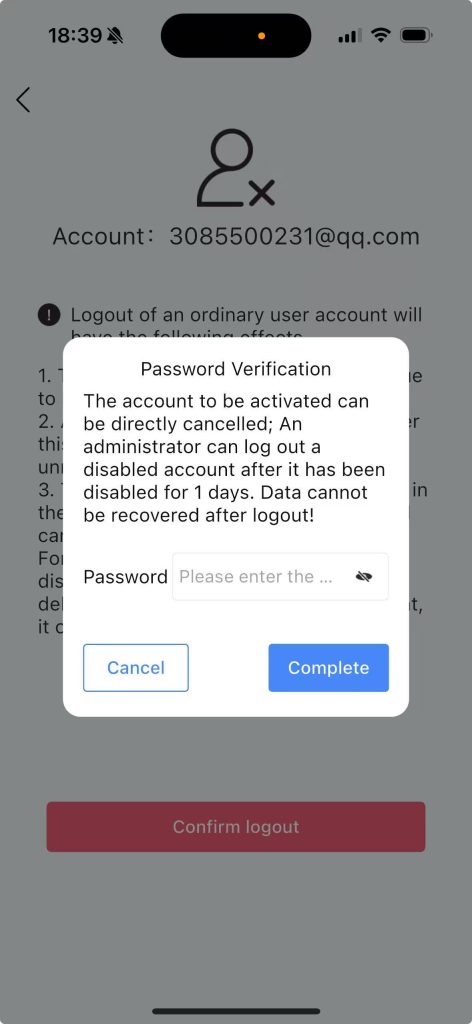 Step 4: Enter the password, and after confirmation, the account will be disabled successfully.