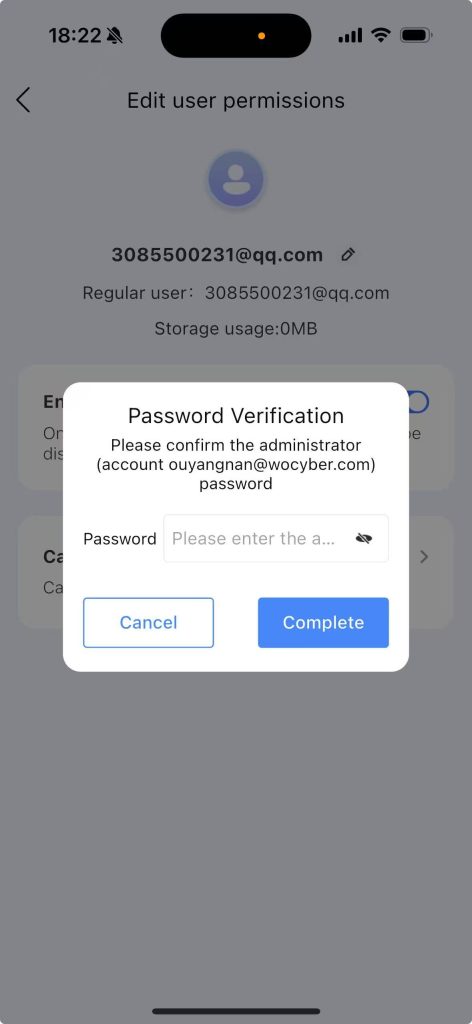 Step 6: Click “OK”. The user will be in the “Disabled, remaining 1 day” status. The data under the account will not be deleted temporarily. The administrator will log out this account by themselves after 1 day.