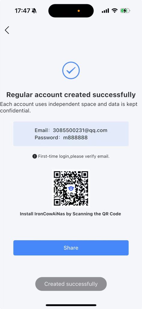 Step 4: After entering the email address and password, click OK to complete the creation of the sub account